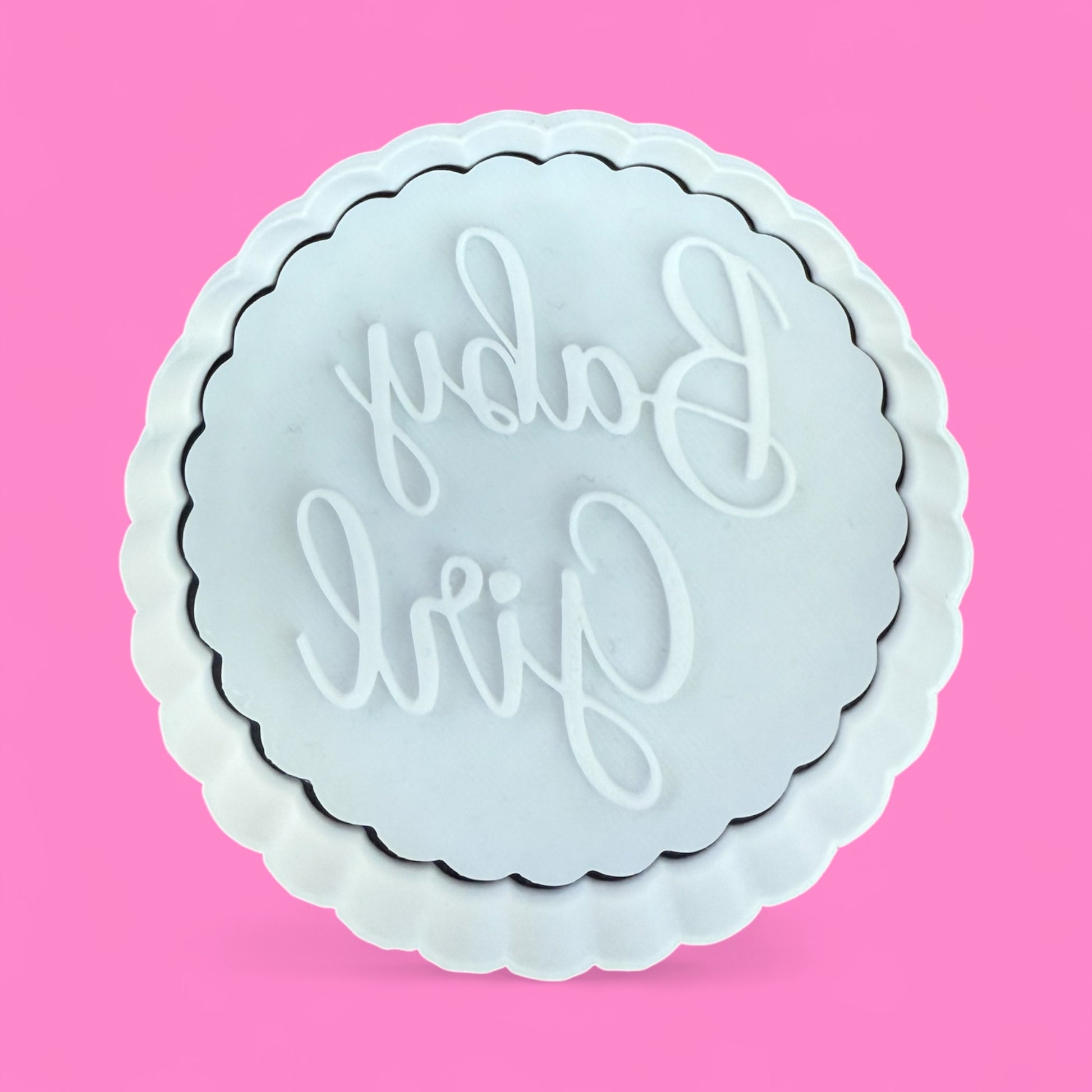 “Baby Girl” Cookie Embosser & Cutter Set – Scalloped Edge (8cm)